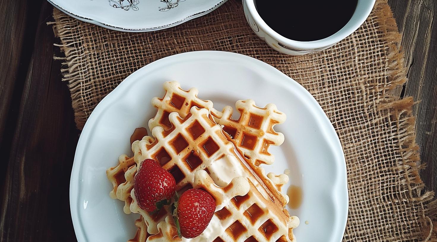 Zutaten zu einem Waffelteig vermengen und anschließend im Waffeleisen ausbacken.